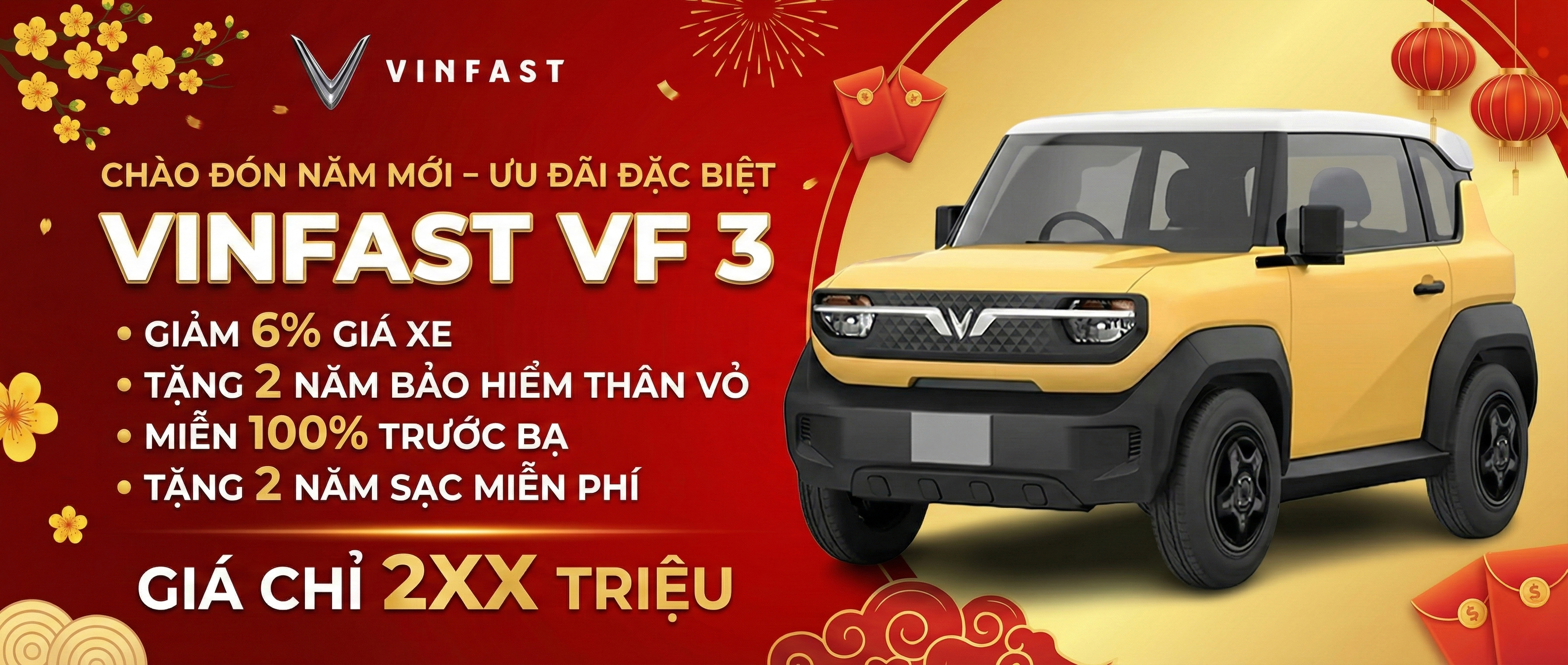 - VinFast VF3: Giảm 6% giá bán xe + Tiền mặt hấp dẫn - Hỗ trợ giảm lãi suất 3% trong 3 năm, Tặng 2 năm bảo hiểm thân vỏ & Gói phụ kiện chính hãng theo xe - Liên hệ trực tiếp để có giá tốt hơn nữa