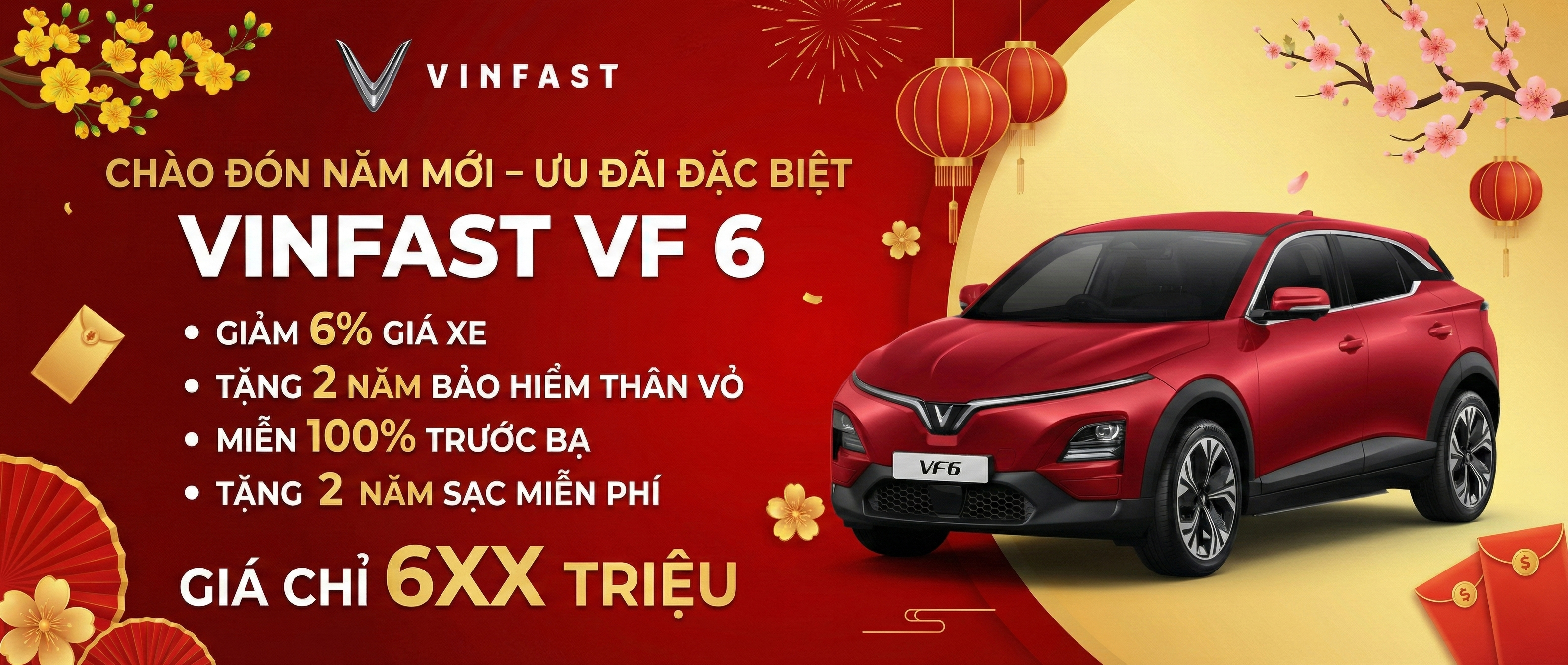 - VinFast VF6: Giảm 6% giá bán xe + Tiền mặt hấp dẫn - Hỗ trợ giảm lãi suất 3% trong 3 năm, Tặng 2 năm bảo hiểm thân vỏ & Gói phụ kiện chính hãng theo xe - Liên hệ trực tiếp để có giá tốt hơn nữa