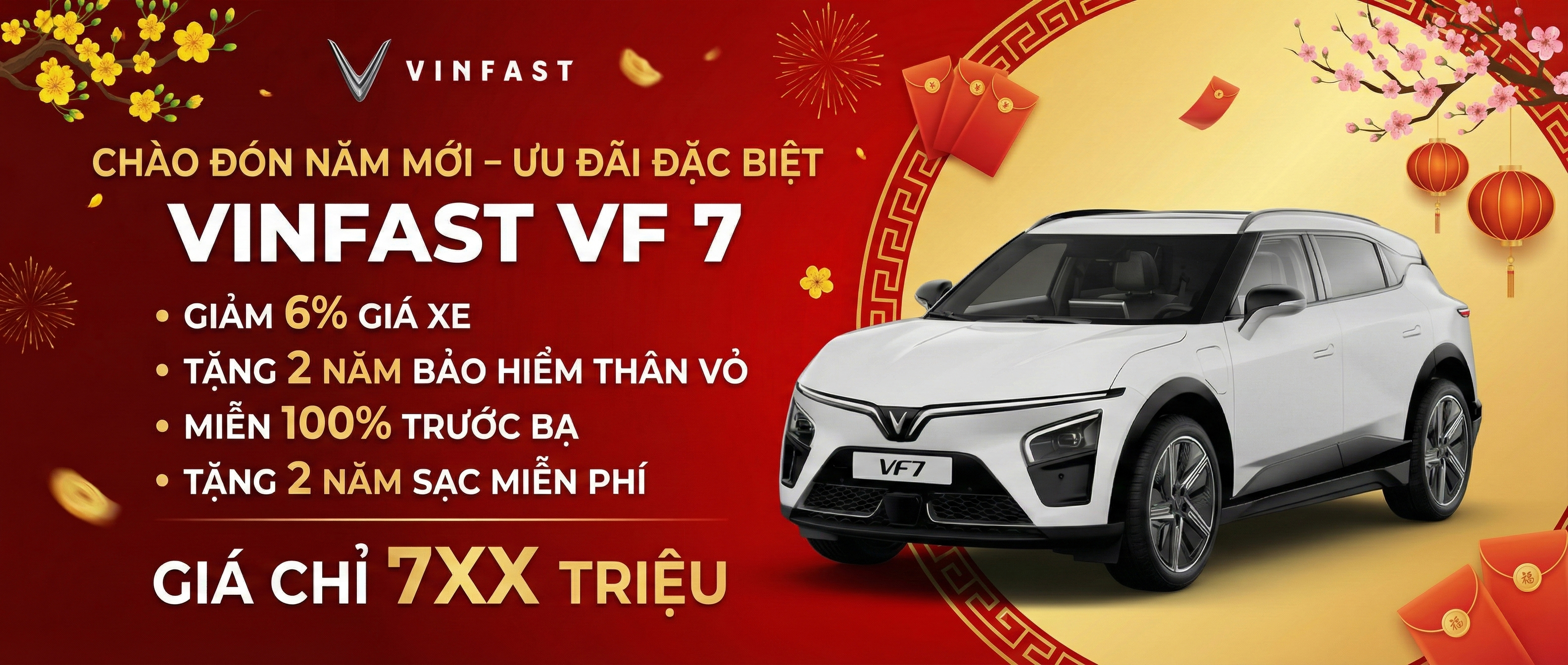 - VinFast VF7: Giảm 6% giá bán xe + Tiền mặt hấp dẫn - Hỗ trợ giảm lãi suất 3% trong 3 năm, Tặng 2 năm bảo hiểm thân vỏ & Gói phụ kiện chính hãng theo xe - Liên hệ trực tiếp để có giá tốt hơn nữa