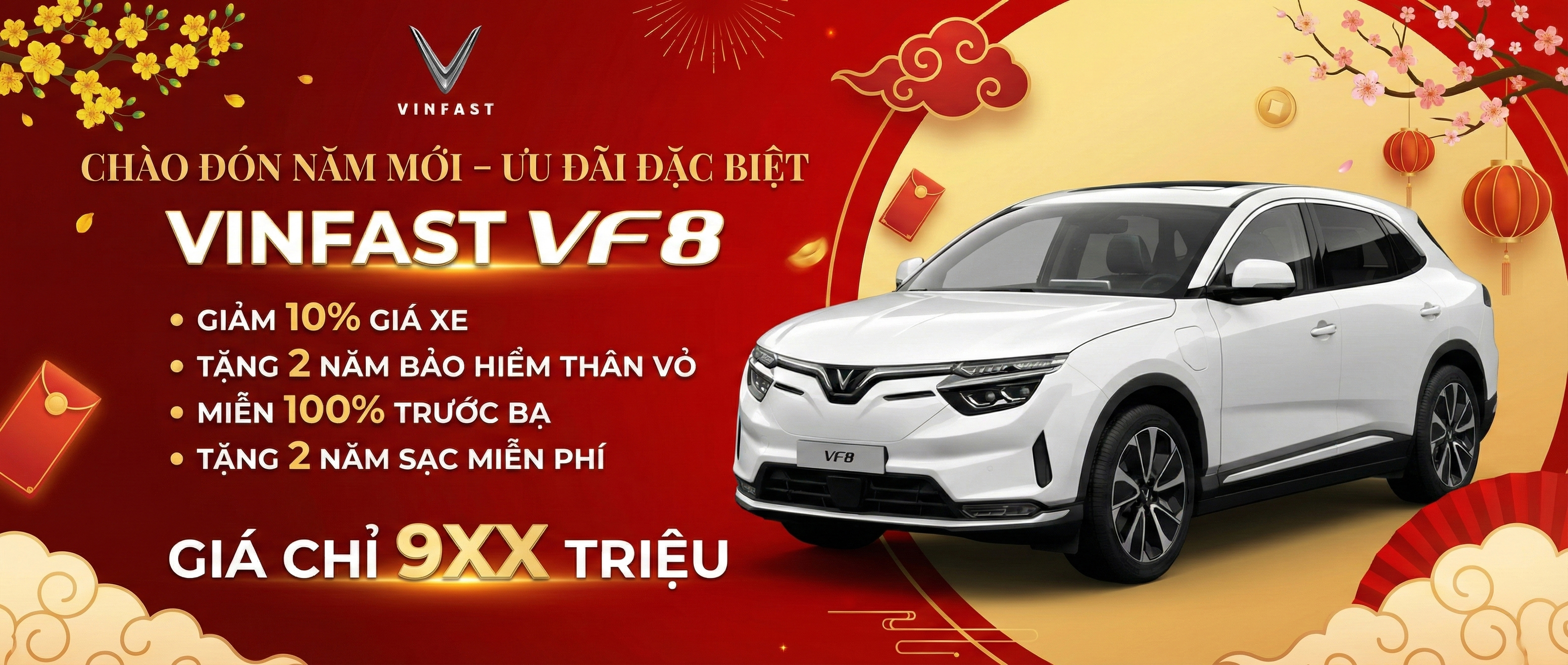 - VinFast VF8: Giảm 10% giá bán xe + Tiền mặt hấp dẫn - Hỗ trợ giảm lãi suất 3% trong 3 năm, Tặng 2 năm bảo hiểm thân vỏ & Gói phụ kiện chính hãng theo xe - Liên hệ trực tiếp để có giá tốt hơn nữa