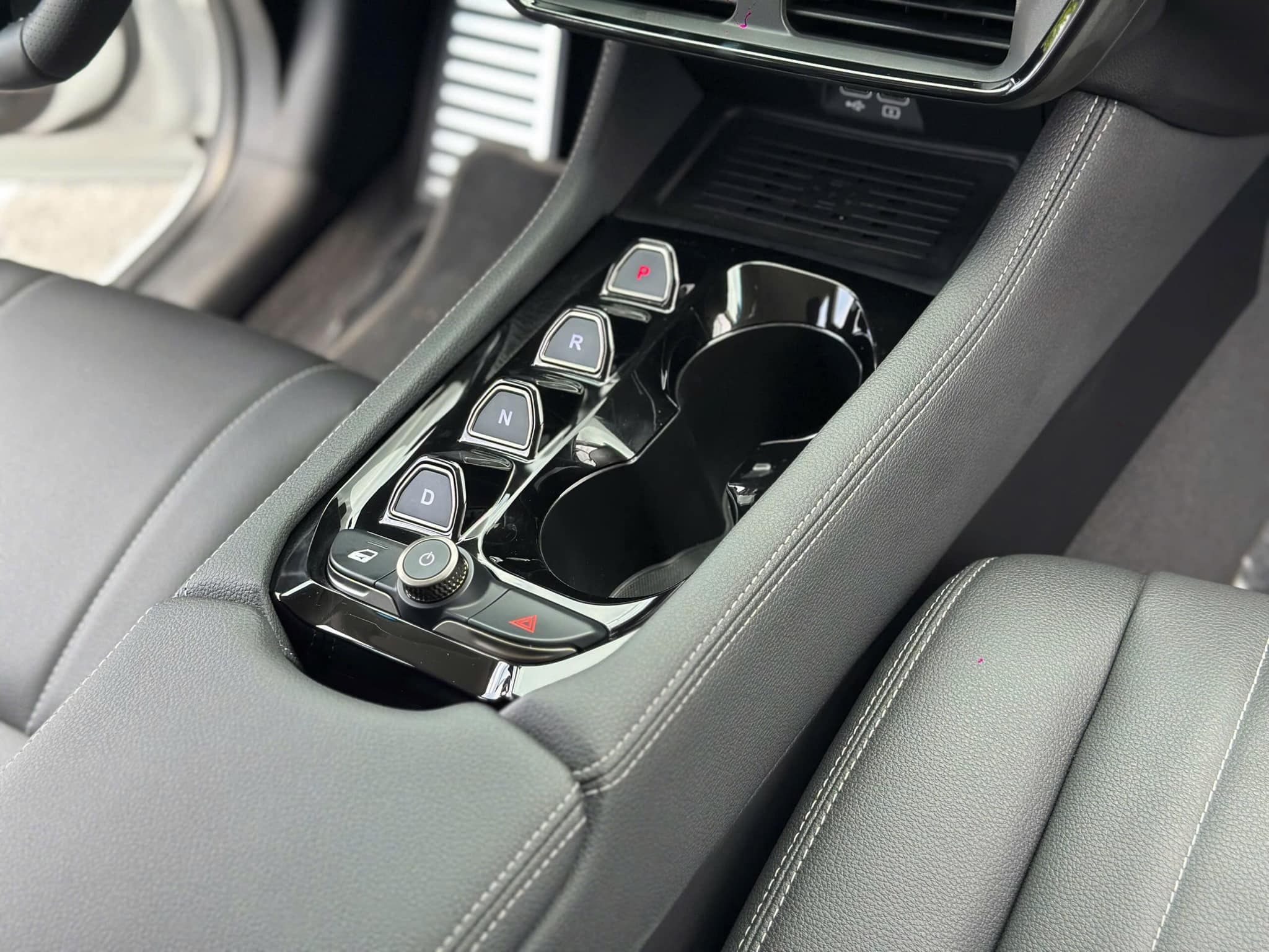 Cần số dạng nút bấm. Thiết kế bệ tỳ tay kích thước lớn có thể trở thành bàn làm việc khi cần. Hệ thống đèn viền nội thất mang đến cảm giác dễ chịu cho người ngồi đồng thời giúp tăng thêm tính sang trọng cho xe (chỉ có ở bản VF8 Lux & Lux Plus).